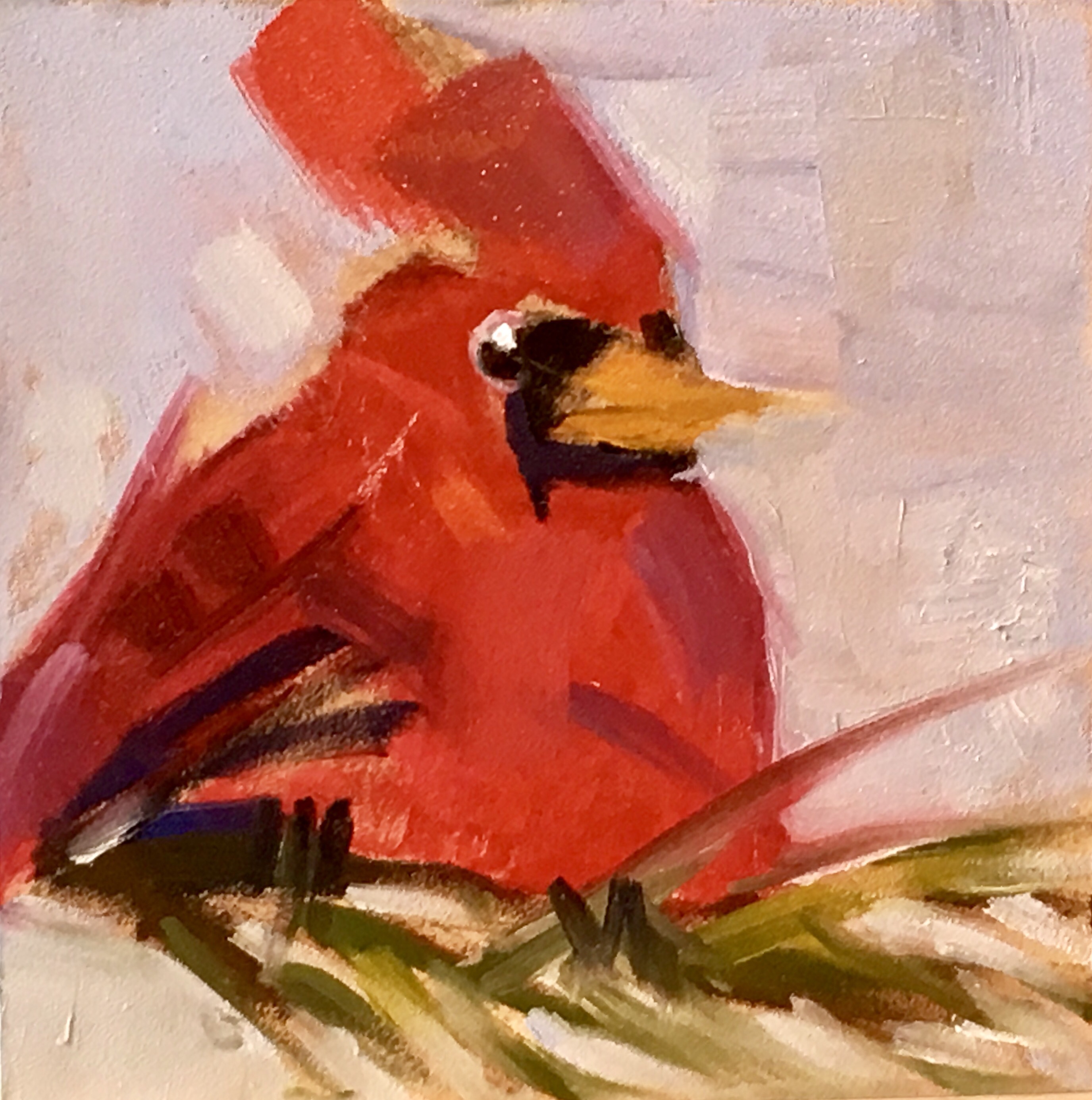 Cardinals often denote a “Hello from heaven”! My Mom loved Cardinals.(And she loved that I became a painter. ) I miss her every day and painting this little bird made my heart happy. Want this sweet little bird painting Go here!