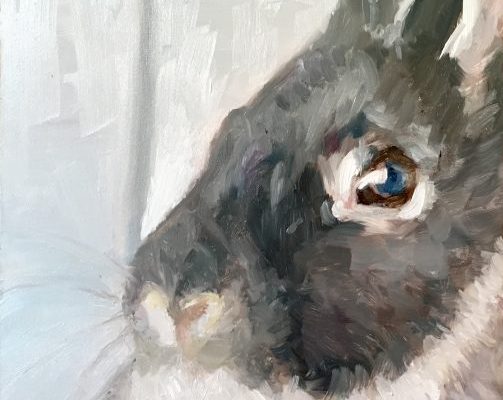 “Morning, Bun!” 6″ x 6″ oil gessobord.